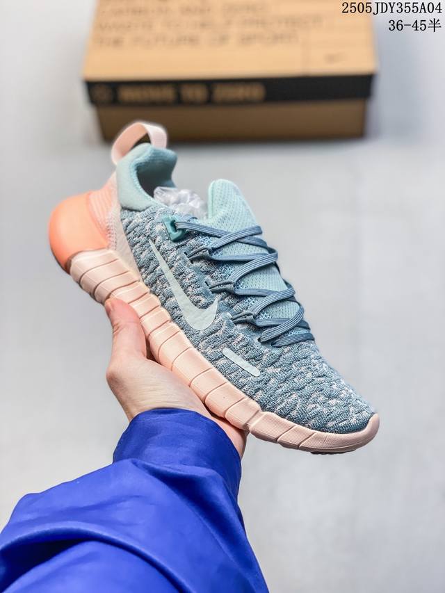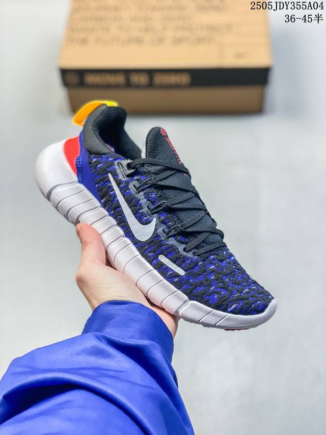 Nike Free Run 5.0 耐克 赤足5.0 蓝橙 可回收材料轻便透气运动跑步鞋 类似袜子的Nike Free Run 5.0由至少20%的可回收材料制成,旨在从跑步过渡到您的日常生活。针织鞋面采用至少87%的重量回收材料制成,将您喜爱的灵活性与安全设计相结合,帮助您贴近地面。与以前的版本相比,新的缓震系统更轻、更柔软、反应更灵敏,因此您可以舒适地继续运动。