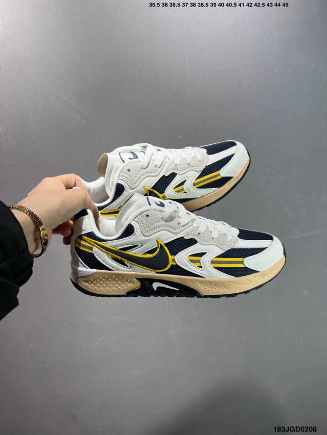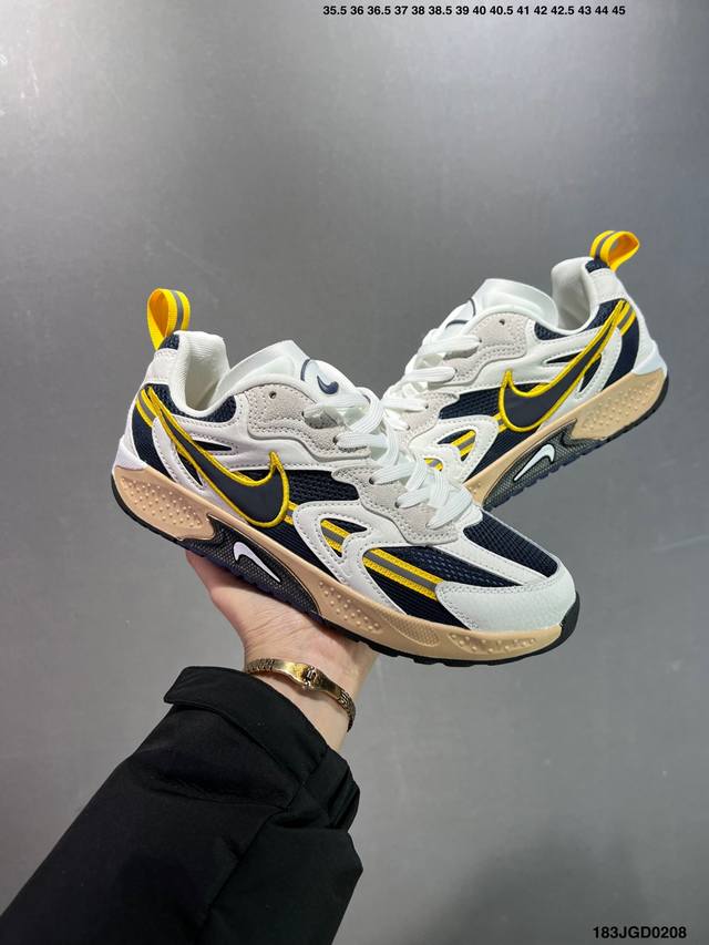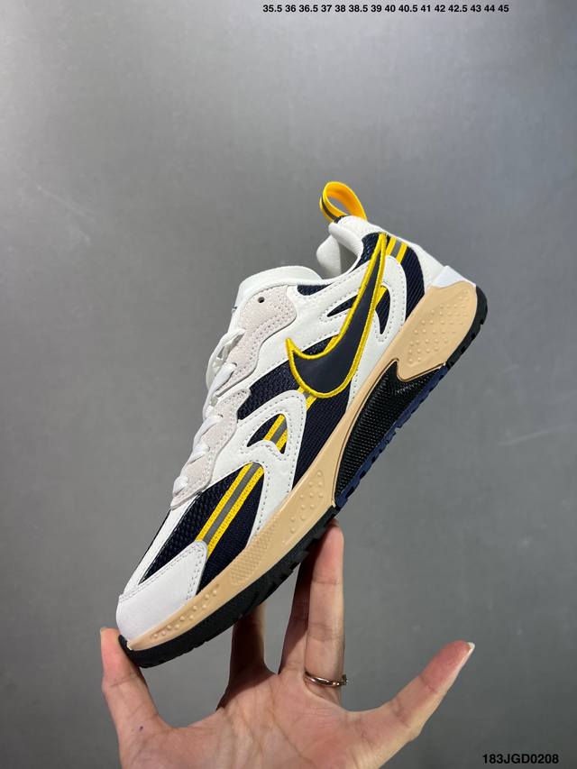 Nike Jam 系列舒适时尚防滑耐磨低帮生活休闲鞋 采用鞋面合成皮革与网眼布设计 以便于运动员在霹雳舞运动中的保护和耐穿 中底设计细节采用翻转Swoosh设计 使得倒立动作时更显帅气 鞋子中的整体结构下降 有助于提供更好的缓震效果 设计语言来与Nike 2000年跑跑鞋中汲取的材料组合以及设计语言 鞋子在线条处大量采用反光效果