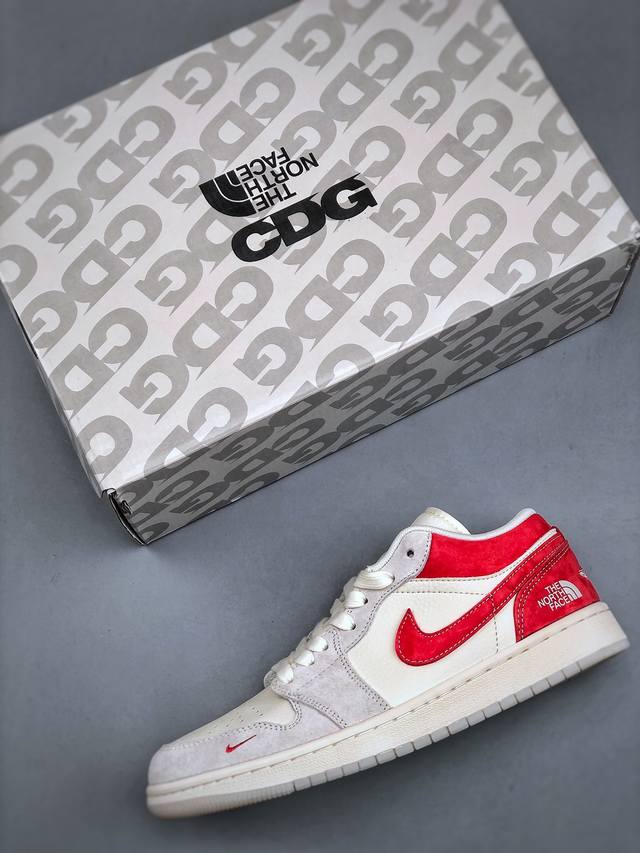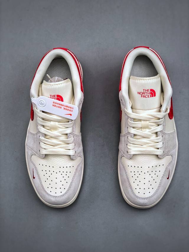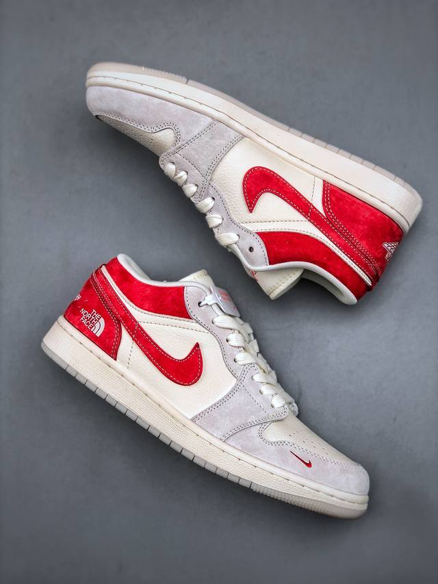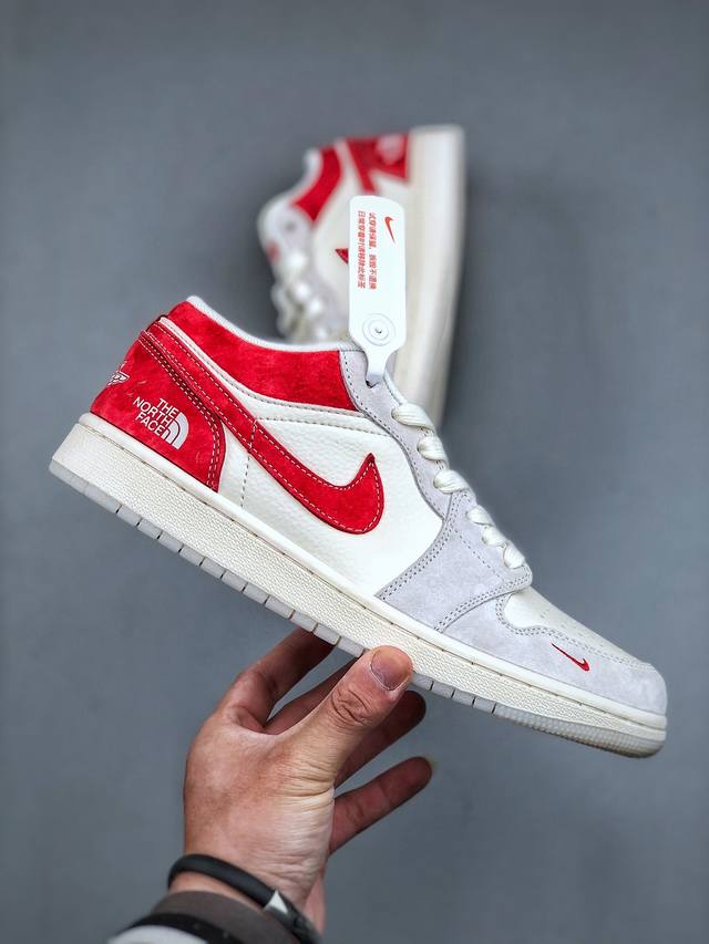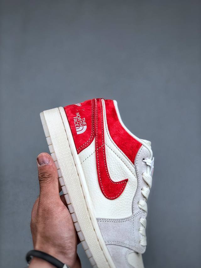 Nike Jordan Air Jordan 1“北面联名 白灰红猪八” 高端定制 低帮 复古 减震 防滑 耐磨 篮球鞋 定制鞋盒 大厂纯原品质出货 超高清洁度 皮料切割干净无任何毛边 细节完美 货号:Hd2 -618 Size:36 36.5 37.5 38 38.5 39 40 40.5 41 42 42.5 43 44 44.5 45。