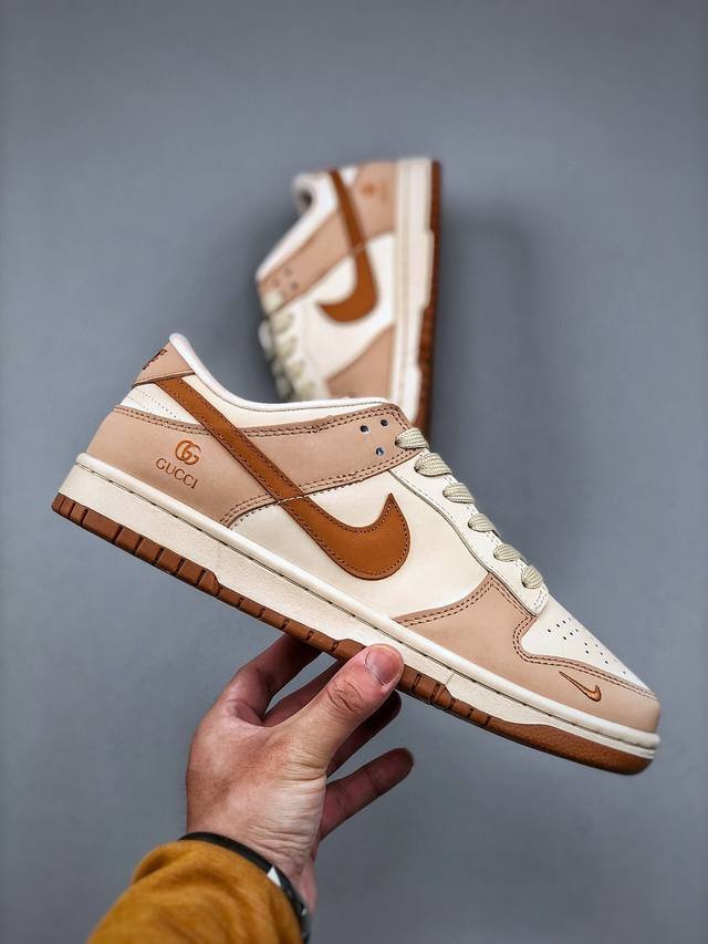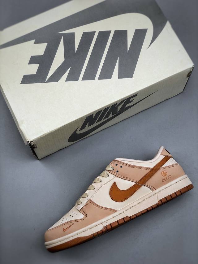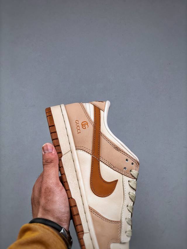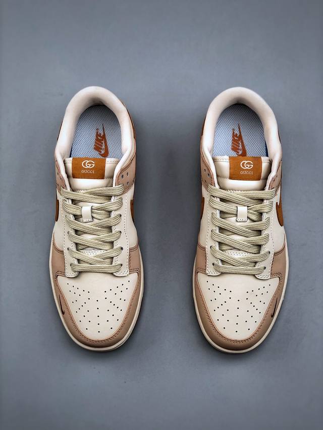 Nike Sb Dunk Low X Gucci 古驰联名 米棕钩 周年高端定制 低帮休闲板鞋 #定制鞋盒 大厂纯原品质出货 超高清洁度 皮料切割干净无任何毛边