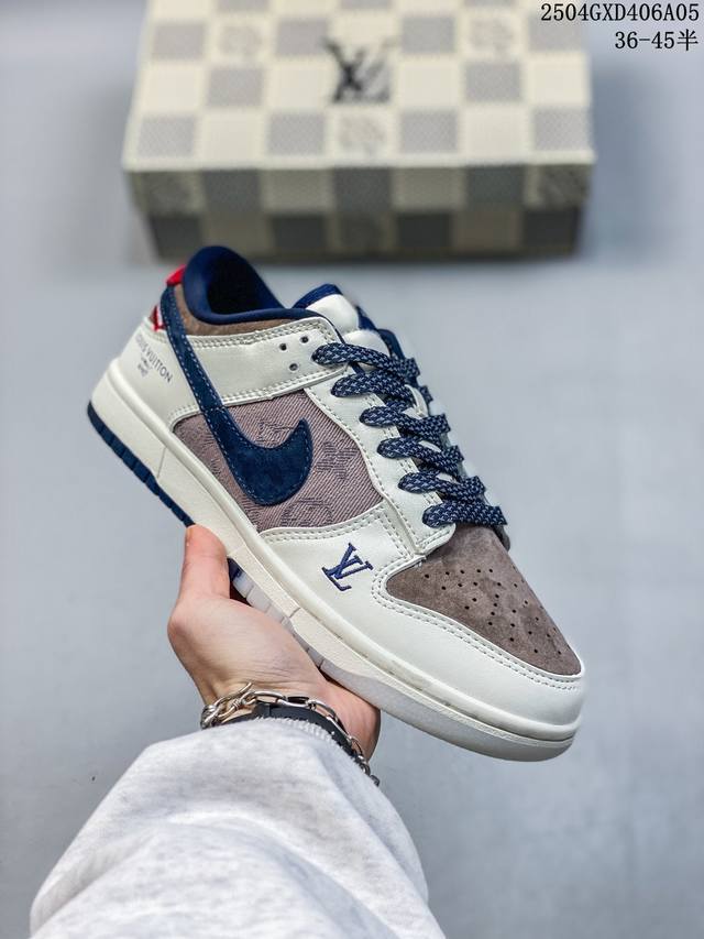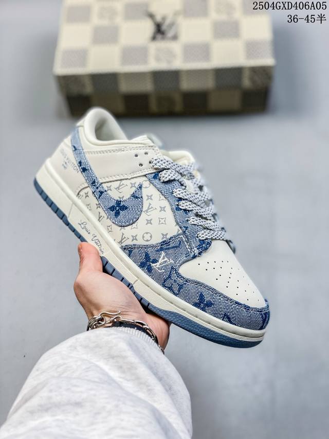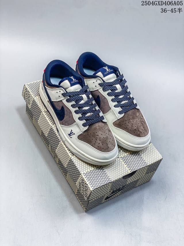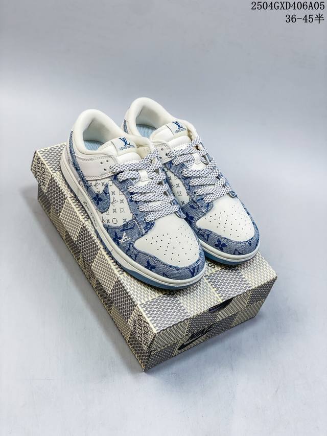 Nike Sb Dunk Low“Lv联名 蓝灰棕印花” 周年高端定制 低帮休闲板鞋 定制鞋盒 夜光 大厂纯原品质出货 超高清洁度 皮料切割干净无任何毛边 细节完美