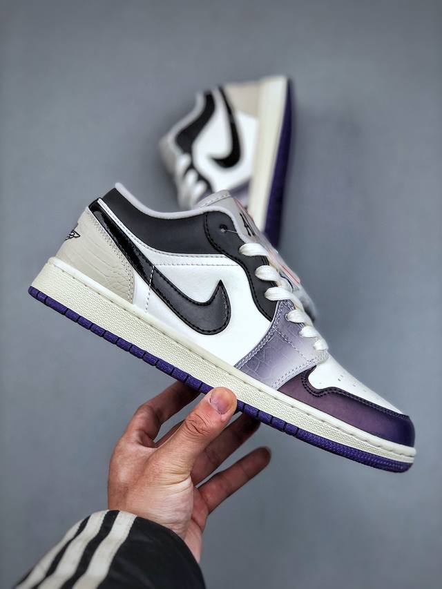 Nike Wmns Air Jordan 1 Low Se白黑紫脚趾 低帮休闲板鞋 同步官方配色 原鞋原档案开发 原档冲孔鞋头 正确满胶鞋垫 四线拉帮 原厂织唛