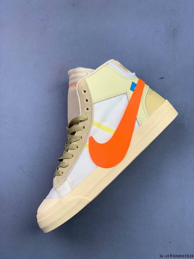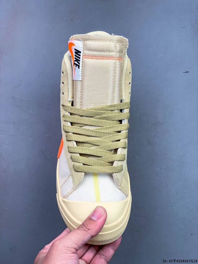 Off-White X Nike Blazer Mid Ow联名款开拓者高帮休闲板鞋 全新订单出货 大厂流水线原鞋原纸板开发打造 内置Nfc感应芯片 原厂港宝定型 进口网纱正确原厂同工序铝楦硫化工艺