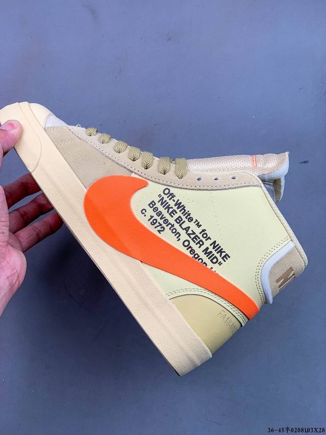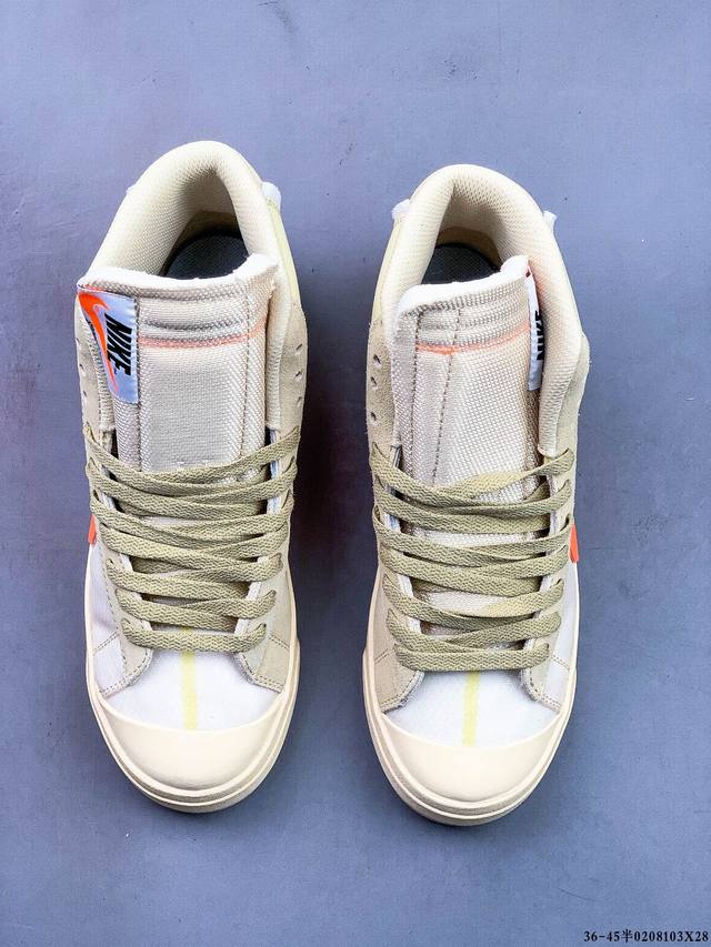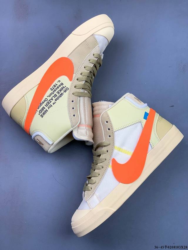 Off-White X Nike Blazer Mid Ow联名款开拓者高帮休闲板鞋 全新订单出货 大厂流水线原鞋原纸板开发打造 内置Nfc感应芯片 原厂港宝定