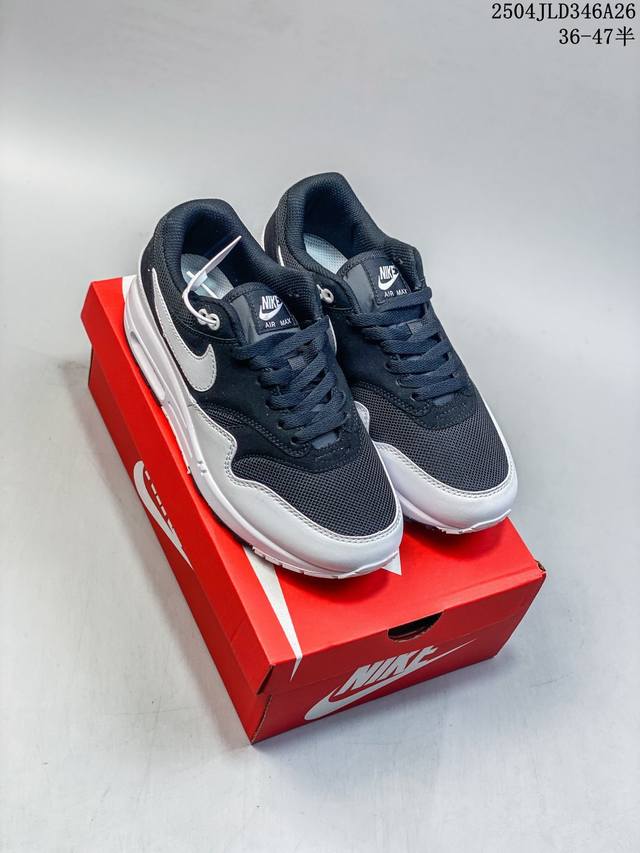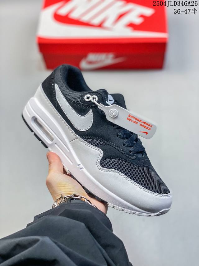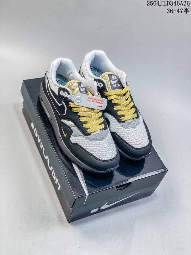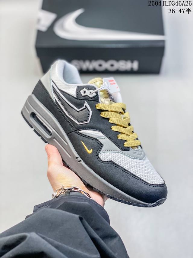 Swoosh X Nike Air Max 1 Big Head Mode 舒适百搭防滑耐磨 低帮跑步鞋 男女同款 黑灰色。性能出众的一双透气鞋面后置半掌气垫运动鞋。货号:Dc5330-300