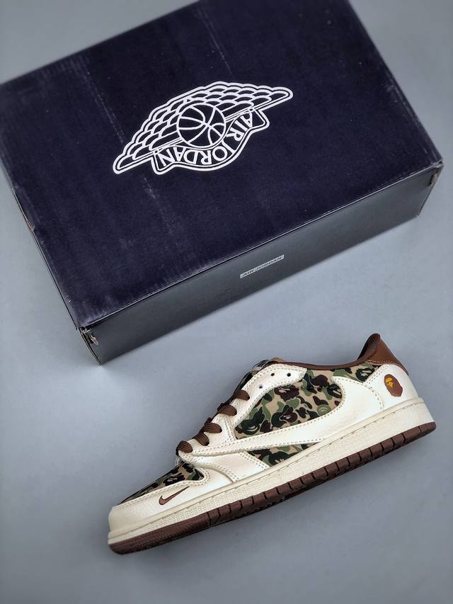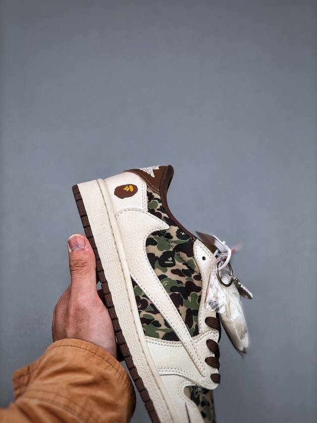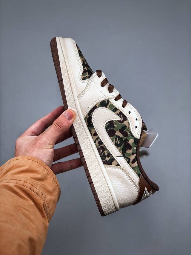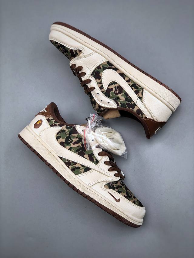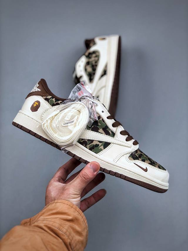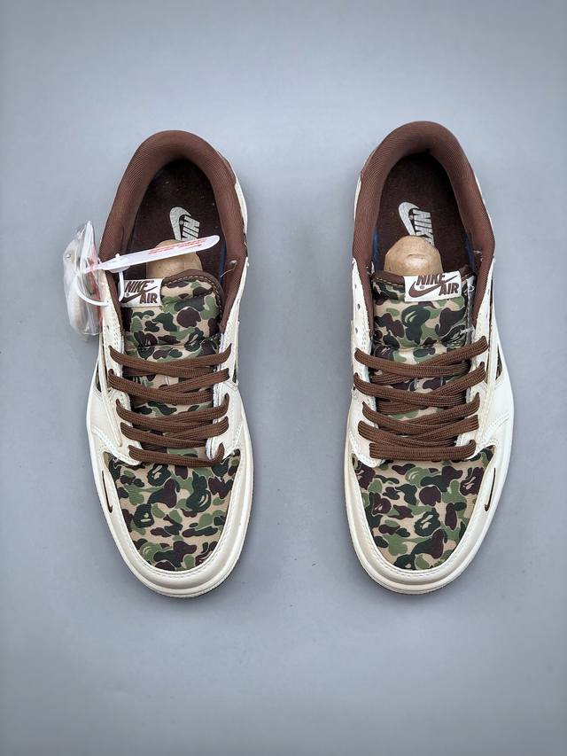 Travis Scott X Nike Air Jordan 1 Low X Bape Air Jordan 1 Low 反转白迷彩绿棕小钩倒钩 纯原版本全鞋采