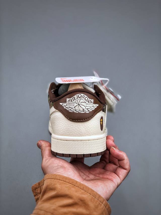 Travis Scott X Nike Air Jordan 1 Low X Bape Air Jordan 1 Low 反转白迷彩绿棕小钩倒钩 纯原版本全鞋采用原装头层皮,用料扎实 精雕细琢鞋型极致还原 飞翼3D打印改良 深度立体 四线中底拉帮皮料选材 钢印 背胶一应俱全 全新批次 原装原模大底全鞋原厂定制皮料,手感细腻正确折边工艺 完美细节诠释官方货号:Xs 019 尺码:36-45 半