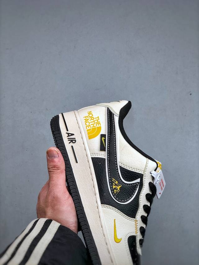 / Xc版 海外限量发售!公司级Nike Air Force 1 '07 Low “北面联名--米黑金标”空军一号 低帮 运动鞋 休闲鞋 折边针车 工艺难度大 原楦