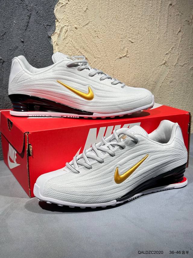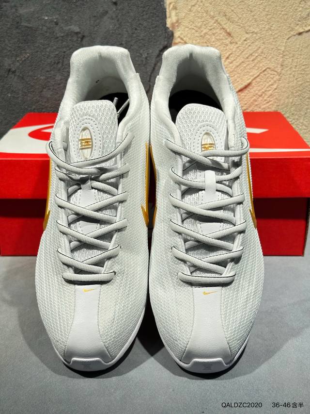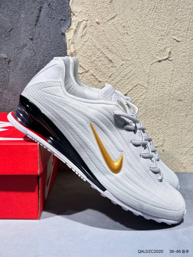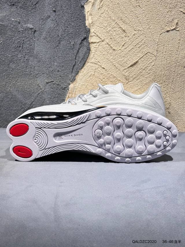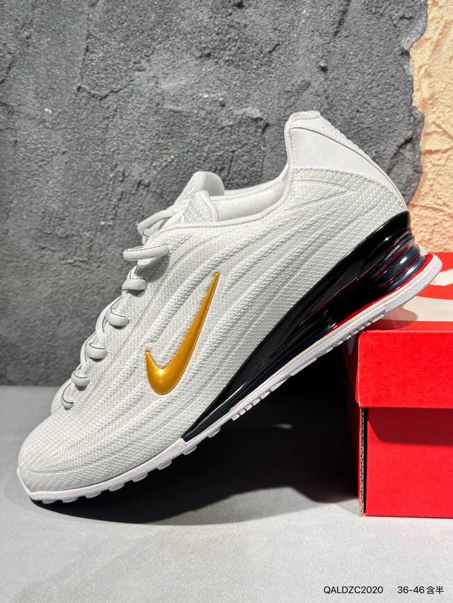 新品上市实拍 鞋头修长,侧面波浪感线条简洁流畅 鞋舌上用了垂直方向的Logo排布,辨识度挺高 侧面的半透明Swoosh非常有未来感 后跟保留了经典的四颗Shox气柱结构 外侧两颗明显加宽,整体鞋款视觉上轻盈百搭 耐克女子运动鞋 货号:Hq7540-001 Qaldzc
