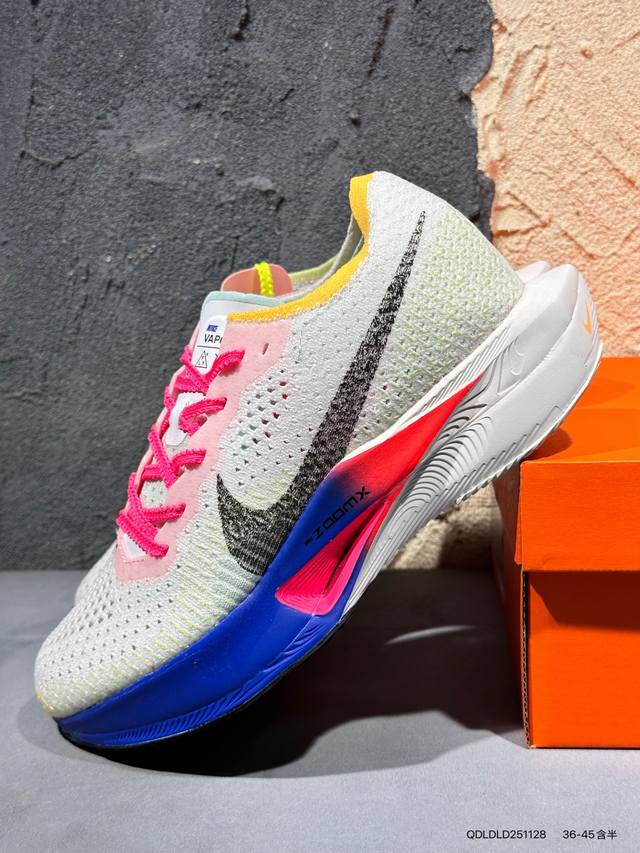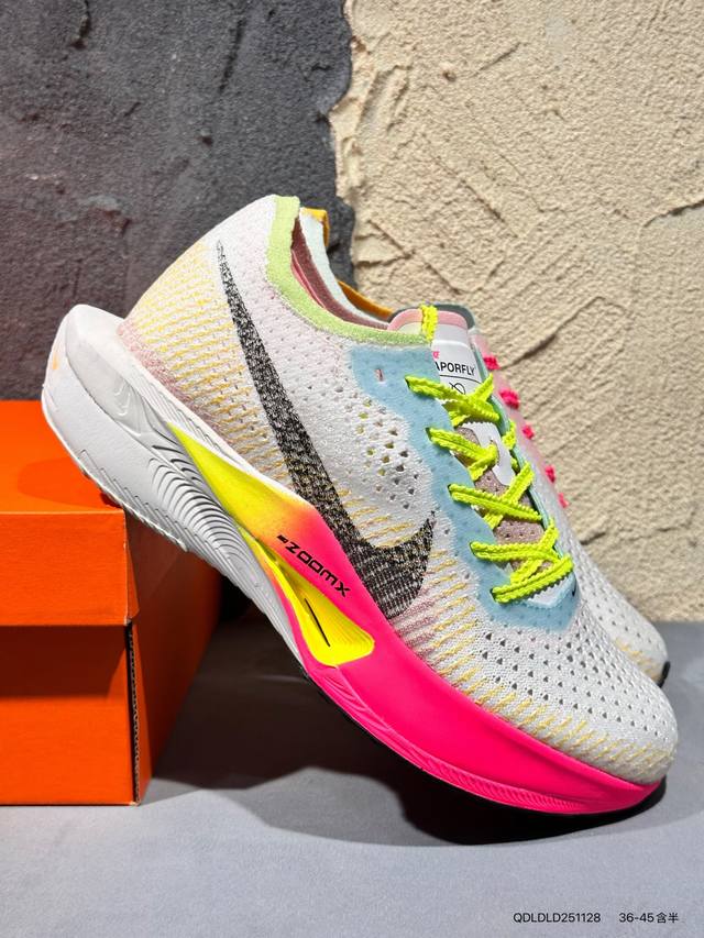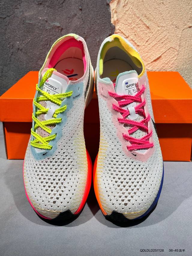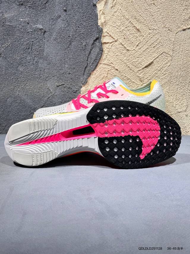 新品上市实拍 DDD Nike 为我们带来全新配色 Zoomx Vaporfly 3。全新配色整体以白色为主,简洁利落;最为亮眼的地方,分别是在中底、鞋外底、鞋带、鞋口以及内衬,都使用了荧光彩色进行设计,突出速度感的同时,也能十分吸睛Hq3219 Qdldld251128 DDD