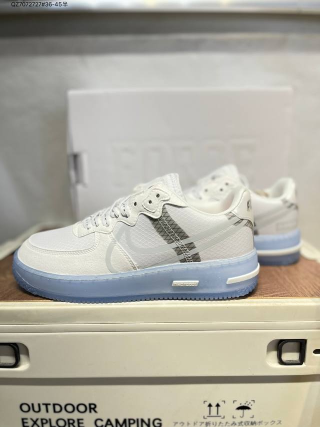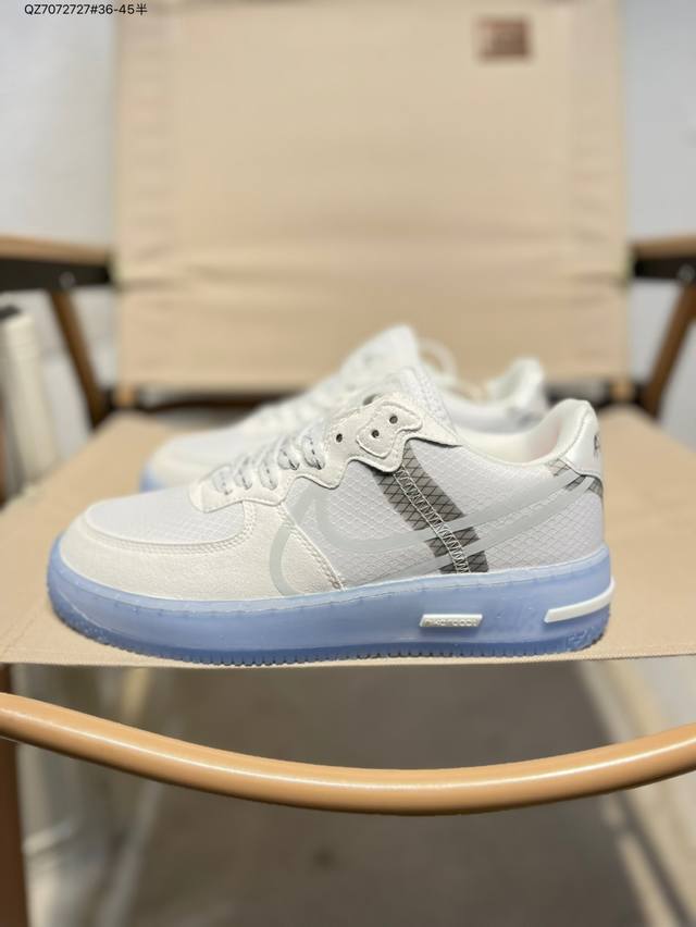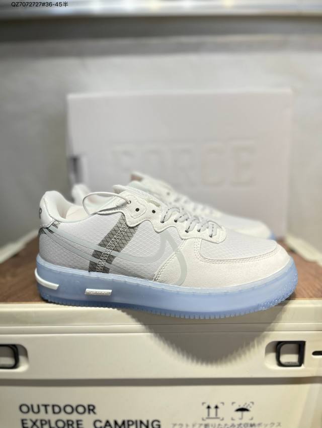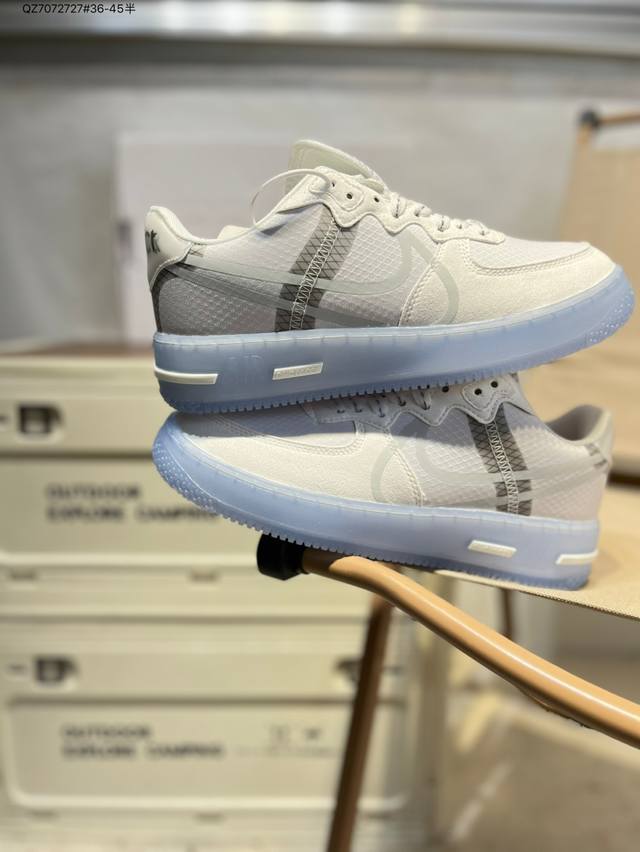 耐克 Nike Air Force 1 React Qs 解析冰蓝 空军一号低帮板鞋 Light Bone 冰块 公司级白色鞋身搭配浅蓝色水晶底,内置Srle气
