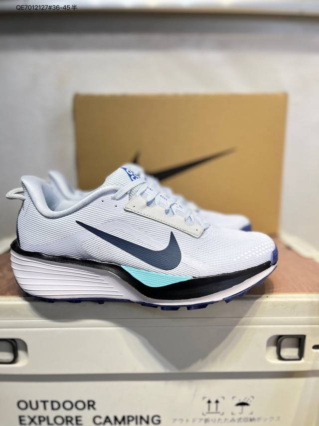 耐克 Nike Reactx pegasustrail6 男女同款越野跑步鞋夏新款耐克飞马该鞋款搭载出众回弹的 Reactx 泡绵中底,多种地面,皆可轻松驾驭。采用别致设计。上脚潮鞋,踏上 Gr 11 步道,穿越比利牛斯山脉,以海岸灯塔作为向导,从地中海一路畅跑到坎塔布里亚海。外侧饰有红白彩绘条纹图案,灵感源于越野途中路标的颜色。Nike Reactx 泡绵轻盈耐穿,令双足贴近地面,塑就柔软顺畅的非凡迈步体验。鞋头高磨损区域融入橡胶和紧密织物。鞋面采用织物搭配开孔设计,塑就出色透气性。外底精简橡胶用量,可
