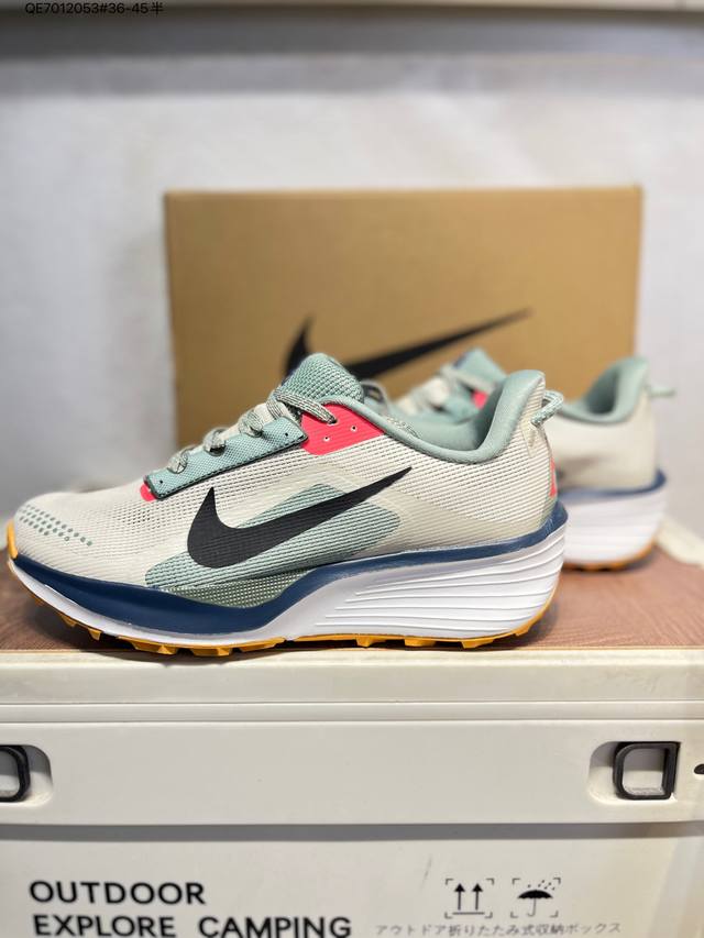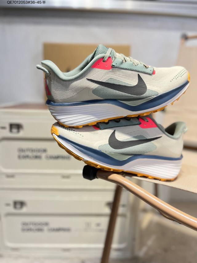耐克 Nike Reactx pegasustrail6 男女同款越野跑步鞋夏新款耐克飞马该鞋款搭载出众回弹的 Reactx 泡绵中底,多种地面,皆可轻松驾驭。采用别致设计。上脚潮鞋,踏上 Gr 11 步道,穿越比利牛斯山脉,以海岸灯塔作为向导,从地中海一路畅跑到坎塔布里亚海。外侧饰有红白彩绘条纹图案,灵感源于越野途中路标的颜色。Nike Reactx 泡绵轻盈耐穿,令双足贴近地面,塑就柔软顺畅的非凡迈步体验。鞋头高磨损区域融入橡胶和紧密织物。鞋面采用织物搭配开孔设计,塑就出色透气性。外底精简橡胶用量,可