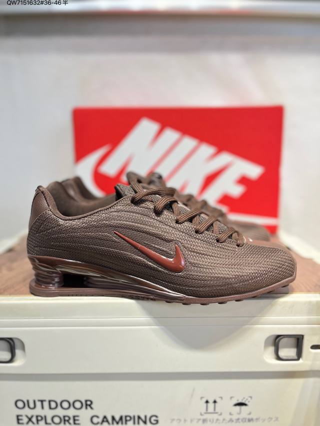 耐克Nike Shox Z 织物 防滑耐磨 复古 跑鞋 气垫缓震运动篮球鞋 薄底Shox 延续了2000年代初期超经典的科技跑鞋元素,满满的都是回忆杀。鞋身线条流畅,未来感十足,一看就跟普通鞋子不一样。鞋的四柱避震系统可太牛了,穿上走路的时候,每一步都像踩在云朵上,软软弹弹的,感觉走路都带风。跑步的时候就更明显了,每跑一步,它都能给你一个恰到好处的回弹,推着你往前跑,就好像脚下装了小马达,跑起来轻松又带劲,对膝盖的冲击也小。而且它的支撑性也很不错,之前我穿有些鞋跑久了脚就会酸,这双完全不会。 DDD 货号