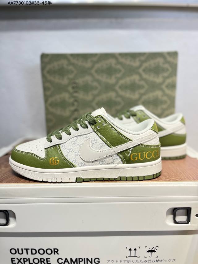 Nike Sb Dunk Low“古驰联名” 周年高端定制 低帮休闲板鞋 定制鞋盒 超高清洁度 皮料切割干净无任何毛边 细节完美Sd6868 Aa7730103#36-45半