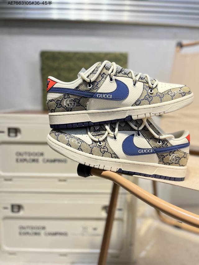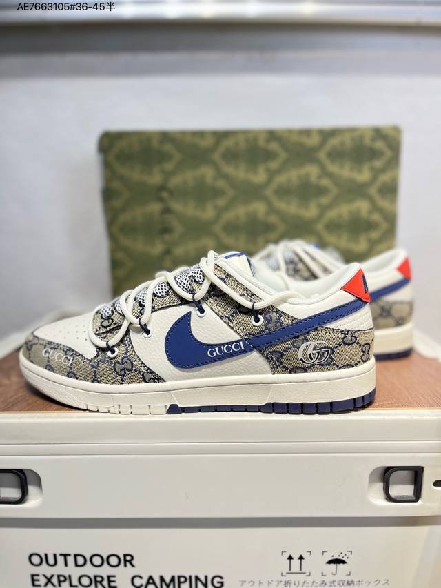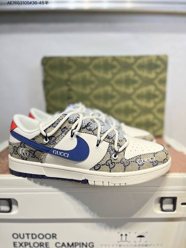 Nike Sb Dunk Low“古驰联名” 周年高端定制 低帮休闲板鞋 定制鞋盒 超高清洁度 皮料切割干净无任何毛边 细节完美Sj2068 Ae7663105#36-45半