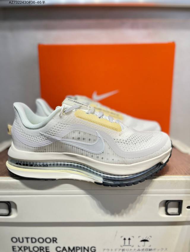 Nk pegasus premium 飞马全掌气垫跑步运动鞋 Hq2593-601 气垫的究极进化 Nike 2025S 新王炸 在特有Air科技加持下,耐克带来全新pegasus premium。这款跑鞋在传承耐克飞马 pegasus 系列标志性的缓震功能的同时,将首次搭载耐克的塑型可视化Air Zoom气垫单元。塑型Air Zoom气垫单元贴合脚部的自然轮廓,帮助跑者在从后跟到脚趾的过渡中能够有效传递力量,带来一种前所未有的轻盈、顺畅回馈体验。中底采用Zoomx泡绵,后跟则使用Reactx泡绵,为跑者