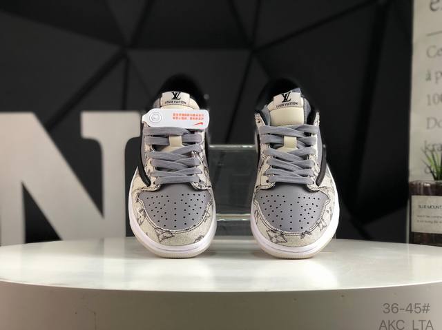 公司级带半码 耐克 Travis Scott X Fragment Design X Jordan Air Jordan 1 Low Og Sp Lv路易威登联名---Lv印花 多方联名合作融合了Travi S Scott 独特的音乐风格 藤原浩个性的设计风格以及Jordan品牌的经典元素 使其成为一双具有独特身份和价值的鞋子 清新而立体的外观加上联名标识更突出了其独特身份 这种配色方案显示出活力和时尚感 在视觉上引人注目 鞋身的质感和细腻的细节处理使其显得高端而格调十足 这款 倒钩 联名是设计与创意完美