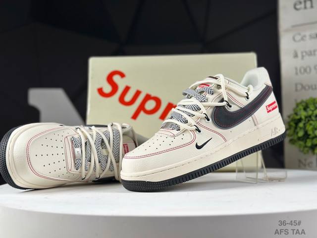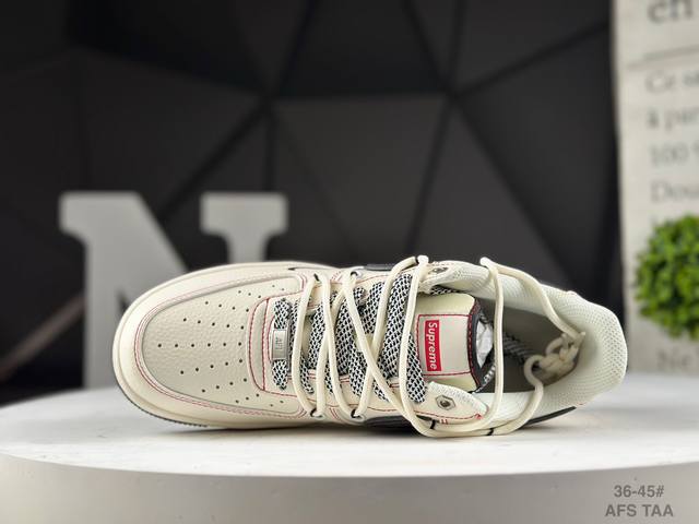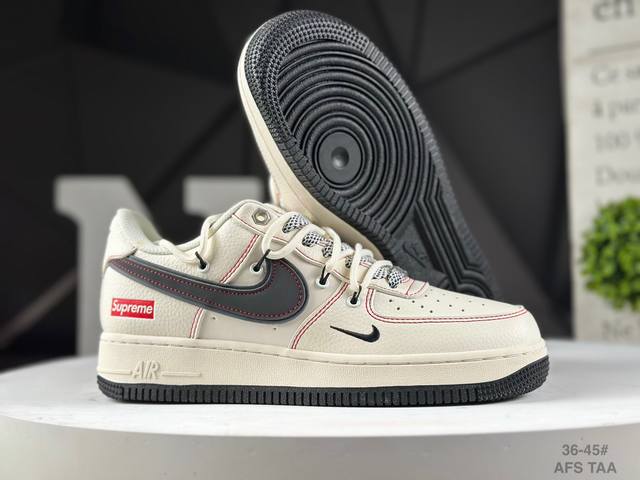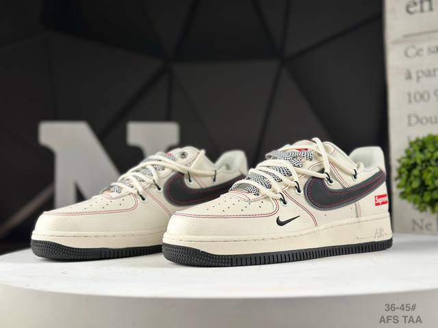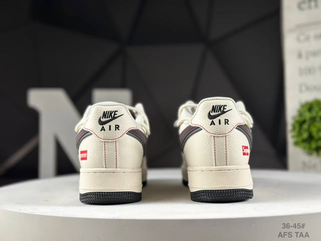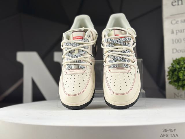 公司级耐克 Nike Air Force 1 '07 Low “Supreme联名--米红线抽绳”空军一号 低帮 运动鞋 休闲鞋 折边针车 工艺难度大 原楦头原纸板 原装鞋盒 定制五金配件 内置全掌气垫 原厂鞋底