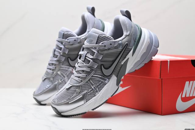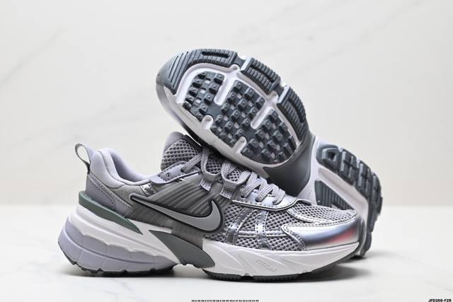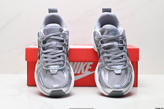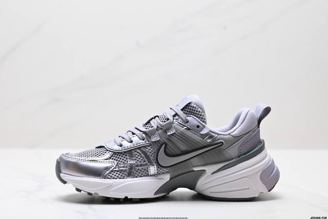 公司级耐克Nike V2K Run跑步鞋复古风潮 网面透气运动鞋 灰银紧致的鞋面材质提供良好的包裹性鞋侧 Swoosh以及鞋头部分搭配增添不少亮点的镀铬细节鞋垫上印有Bill Bowerman头像 将细节拉满中底饰有独特的做旧效果 最后搭载黑色外底凸显整双鞋的复古气质