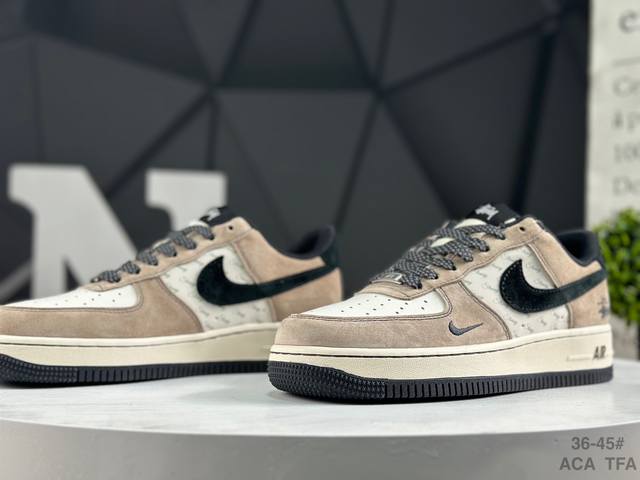 300 海外限量发售!公司级Nike Air Force 1 '07 Low “Nike联名——米灰多小勾”空军一号 低帮 运动鞋 休闲鞋 折边针车 工艺难度大