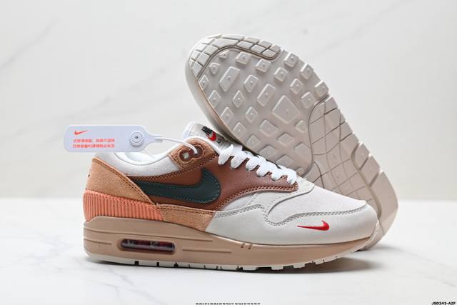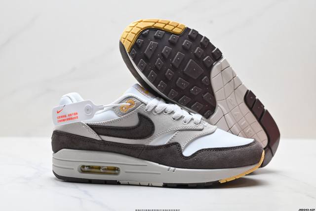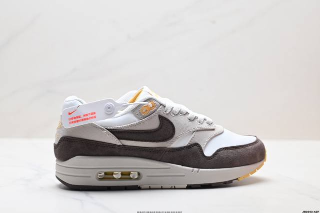 公司级Nike Air Max 1 耐克气垫 缓震 耐磨运动鞋 鞋身材质均选择皮革 织物 麂皮多种材质覆盖 保证质感的前提下 层次感也相当不错 带有开窗式 Ai