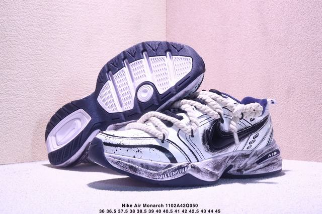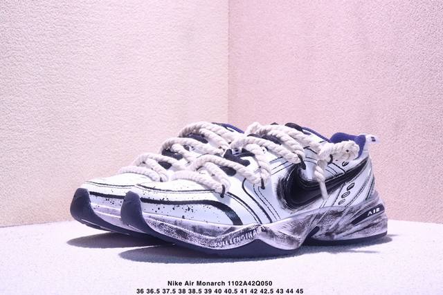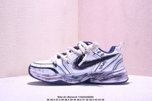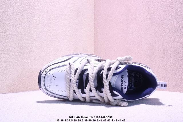 公司级Nike Air Monarch Iv皮革 日常百搭 減震防滑 低帮生活休闲鞋 采用皮革材质打造鞋面,鞋面结实耐穿,日常也非常好打理,整体配色以白色为主调搭配蓝色点缀,配色简约百搭,日常穿着百搭程度就不用多说了,超可!同时搭载全掌内嵌式Air 缓震配置,塑就缓震体验感、增高厚底同样带来不一般的感觉, DDD 货号:415445-102 DDD 尺码:36 36.5 37.5 38 38.5 39 40 40.5 41 42 42.5 43 44 45 DDD Xm1102Q050 DDD