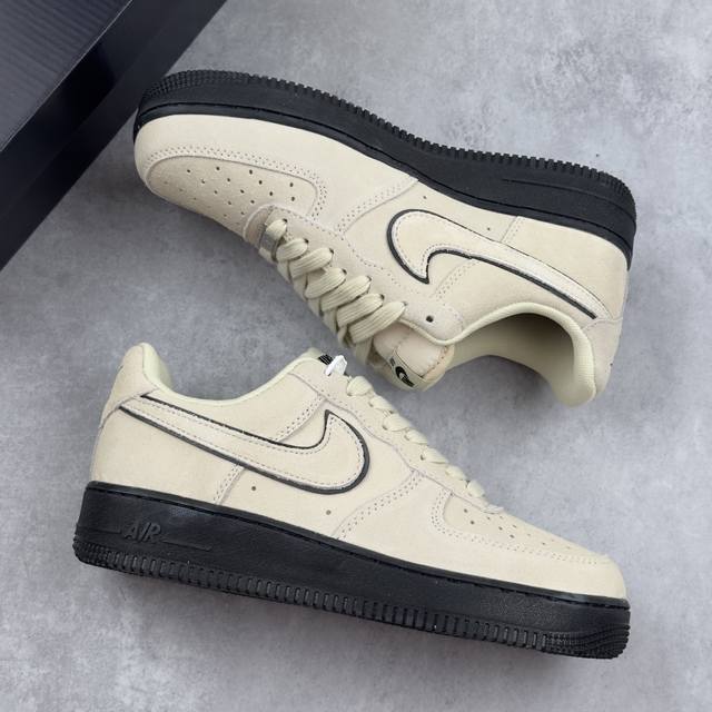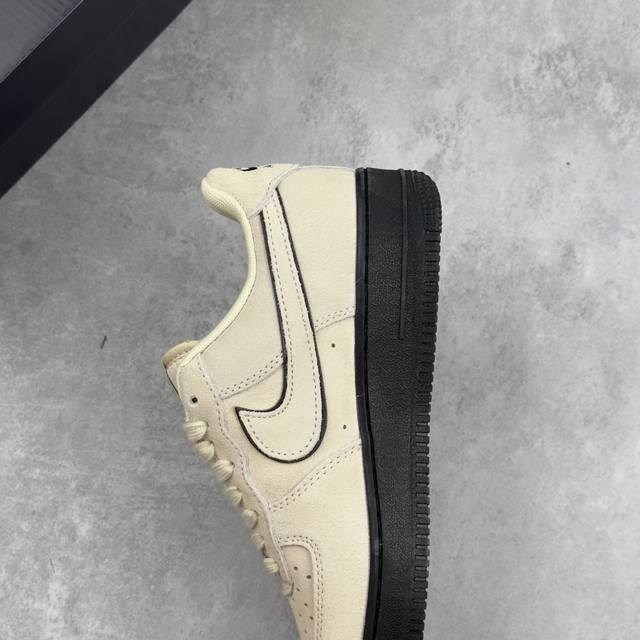 耐克Nike Air Force 1 Low空军一号低帮经典百搭休闲运动板鞋“翻毛浅黄黑底”