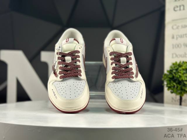 海外爆款限量发售!耐克 Travis Scott X Fragment Design X Jordan Air Jordan 1 Low Og Sp “问界联名 金瑞红” 多方联名合作融合了Travi翻毛蓝勾S Scott 独特的音乐风格,藤原浩个性的设计风格以及Jordan品牌的经典元素 使其成为一双具有独特身份和价值的鞋子 清新而立体的外观加上联名标识更突出了其独特身份 这种配色方案显示出活力和时尚感 在视觉上引人注目 鞋身的质感和细腻的细节处理使其显得高端而格调十足 这款“倒钩”联名是设计与创意完美