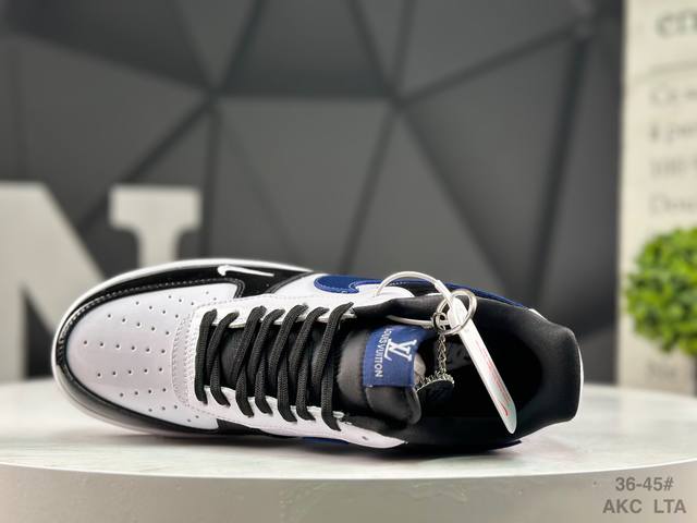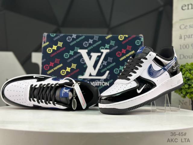 海外爆款限量发售!高端定制 耐克 Nike Air Force 1 '07 Low “Lv联名---黑白蓝”以 Air Force 1 经典鞋型为基底,黑白蓝三色漆皮拼接,光泽感拉满,在光线流转间尽展高级质感。标志性的 Nike Swoosh 以深邃蓝调呈现,鞋身侧面暗藏 Lv 品牌印记,细节处满是联名的诚意。更有 Lv 金属铭牌挂饰点缀鞋身,高端定制 低帮休闲板鞋 定制鞋盒 大厂纯原品质出货 超高清洁度 皮料切割干净无任何毛边 细节完美 DDD 货号:Df0188-101 DDD Size:36 36.