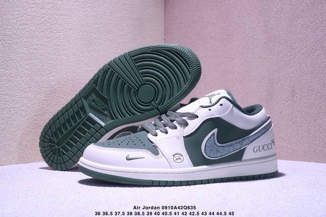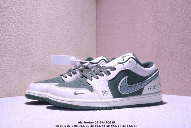海外爆款限量发售!Nike Jordan Air Jordan 1“古驰联名 浅绿米花勾” 高端定制 低帮 复古 减震 防滑 耐磨 篮球鞋 定制鞋盒 大厂纯原品质出货 超高清洁度 皮料切割干净无任何毛边 细节完美