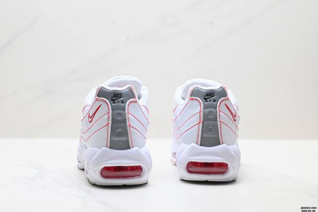 真标Nike Air Max 95 Tt 耐克 气垫复古慢跑百搭鞋休闲运动鞋 这双鞋采用前脚掌开窗式气垫 这种设计在当时是前所未有的 鞋带孔的设计灵感来自人体肋骨 而鞋底支撑片则模仿了人体脊柱 甚至每个气垫的气压都有详细的标记 这种设计即使在今天看来 依然充满了科技感 货号:Ib7936-400 尺码:40-46 Id:Jed093-Dzh