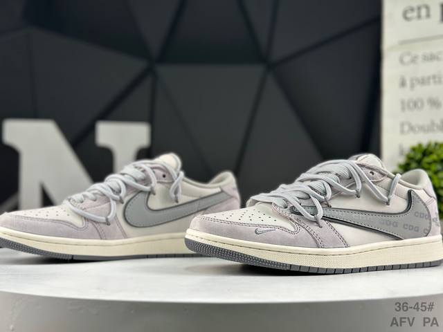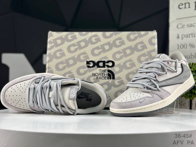 #多方联名合作融合了Travis Scott 独特的音乐风格,藤原浩个性的设计风格以及Jordan品牌的经典元素 使其成为一双具有独特身份和价值的鞋子 清新而立体的外观加上联名标识更突出了其独特身份 这种配色方案显示出活力和时尚感 在视觉上引人注目 鞋身的质感和细腻的细节处理使其显得高端而格调十足 这款“倒钩”联名是设计与创意完美结合