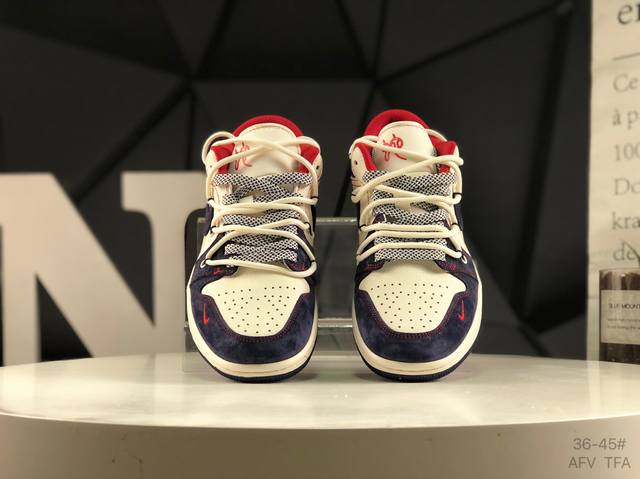 耐克 Air Jordan 1 Low 此款主张打破传统的工业化流水线设计限制,以Made By Ideas的超级创意为理念,集结众多潮流设计师,结合时下最Ing潮流风尚,为潮流爱好者打造彰品自我的专属潮品。同时尊重每个年轻人对于潮流的理解与选择,主张“让每个年轻人塑造自己的潮流”。
