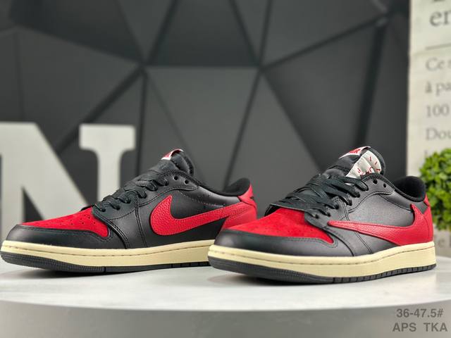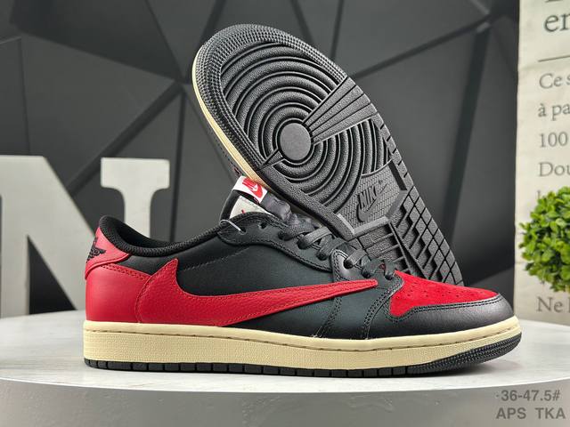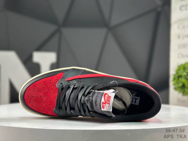 公司级Nike Air Jordan 1 X Travis Scott Aj1倒勾 乔一倒钩 耐克 低帮文化篮球鞋 完美品质出货 细节如图所示 鞋面切割工整 冲