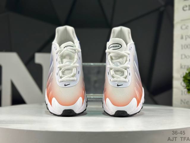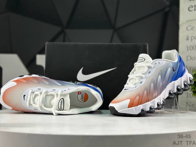 耐克 Nike Air Max Dn8 全掌气垫科技运动跑步鞋 DDD 鞋款采用醒目渐变织物和动态波浪状结构鞋面,搭配黑色中底和外底,以及迷你黑色 Swoosh 标志,采用 8 根压柱 Dynamic Air 气柱,将从鞋跟到脚尖的“Dynamic Air”系统直接配置在橡胶的外底上,尽可能缩短与地面的距离,实现平滑的体重移动,即刻上脚,享受非凡运动体验。环保纤维革饰片组合网眼布鞋面,耐弯折热塑框架支撑鞋身。中底搭载Eva轻量缓震,前掌和后跟配备了 Air Zoom 气垫单元。正确后跟Tpu加固,鞋子引入