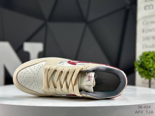 Nike Jordan Air Jordan 1“斯图西联名 灰黑红标双拼” 高端定制 低帮 复古 减震 防滑 耐磨 篮球鞋 定制鞋盒 大厂纯原品质出货 超高清