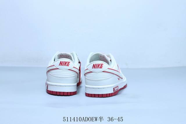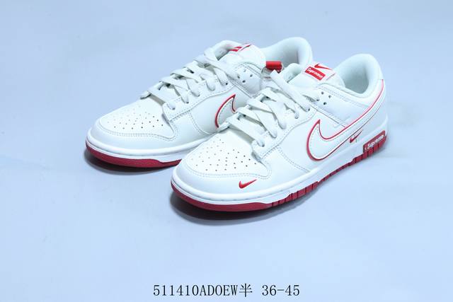 耐克 Nike Sb Dunk Low Pro 复古低帮 休闲运动滑板板鞋 白红 Supreme 货号 Dj -013 511410Adoew半 36-45
