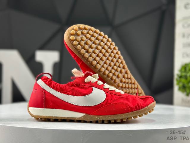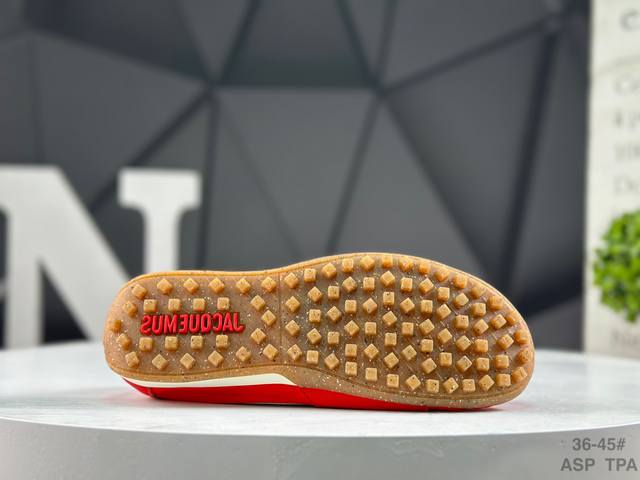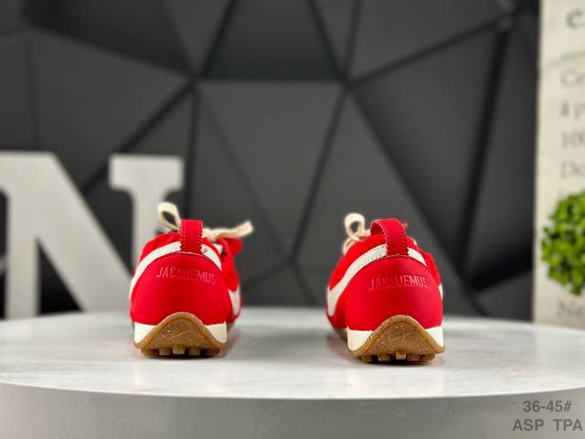 耐克 Nike X Jacquemus网眼鞋面透气性不错,走路脚面也没闷汗。鞋型偏窄但不挤脚,鞋带系紧后脚踝处贴合度挺好,跑步时不会晃。 DDD 踩上去鞋底有一定弹性,走石子路能感觉到缓冲。优点是轻便透气、百搭耐脏,黑色鞋面沾点灰看不出来,用湿布擦一下就干净。 DDD 货号:Hv8547-600 DDD 鞋码:36-45半码 Asp Tpa DDD