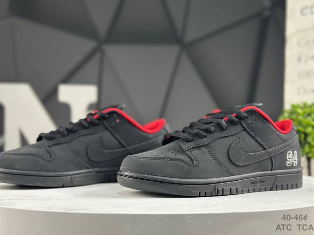 / 耐克 Supreme X Nike Dunk Sb Low 此款鞋跟上绣有“94”字样,纪念品牌的创立年份,该品牌的标志性徽标还被蚀刻在了中底的侧壁上。鞋垫沿用