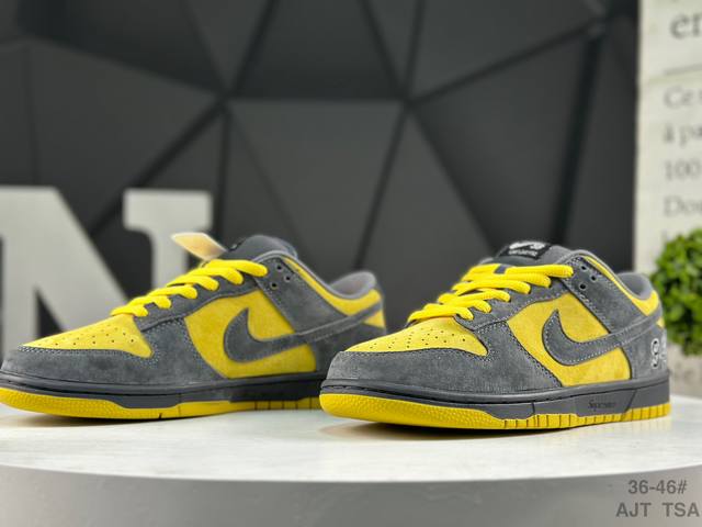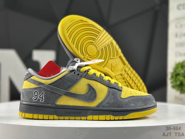 耐克 Supreme X Nike Dunk Sb Low 此款鞋跟上绣有“94”字样,纪念品牌的创立年份,该品牌的标志性徽标还被蚀刻在了中底的侧壁上。鞋垫沿用了标准的红色表面,每只鞋垫上都有Nike Sb标识,并且Supreme的标识横跨左右两只鞋垫。 DDD 货号: Hq8487-300 DDD Size: 如图所示 Ajt Tsa DDD