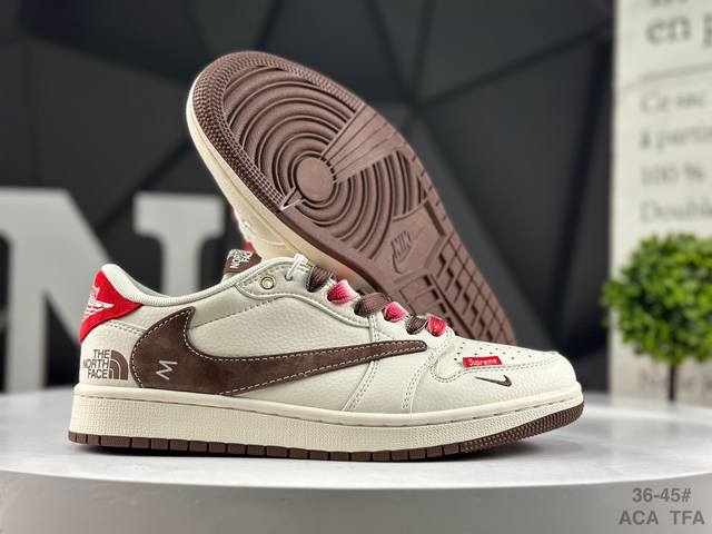 耐克 Travis Scott X Fragment Design X Jordan Air Jordan 1 Low Og Sp “北面联名 米棕小红标” 多方联名合作融合了Travi翻毛蓝勾S Scott 独特的音乐风格,藤原浩个性的设计风格以及Jordan品牌的经典元素 使其成为一双具有独特身份和价值的鞋子 清新而立体的外观加上联名标识更突出了其独特身份 这种配色方案显示出活力和时尚感 在视觉上引人注目 鞋身的质感和细腻的细节处理使其显得高端而格调十足 这款“倒钩”联名是设计与创意完美结合 融合多方