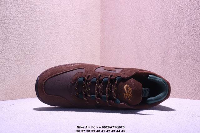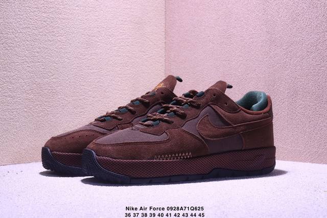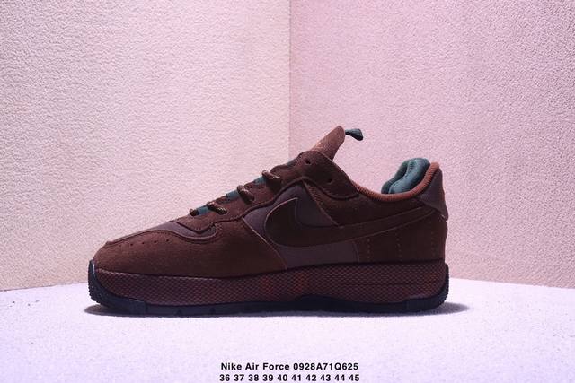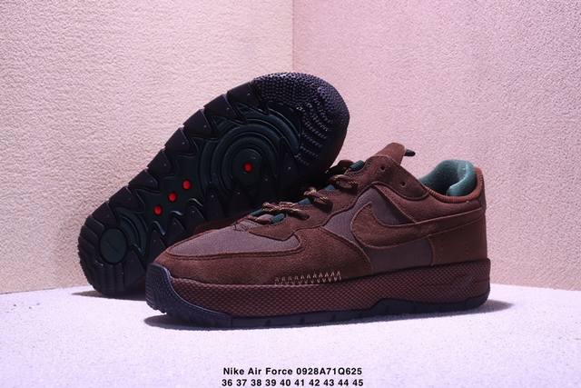 Nike 耐克 男女鞋半码制,升级原楦原纸版数据开发,采用翻毛皮组合尼龙防刮布鞋面材质,中底Md发泡缓震组合防滑耐磨橡胶外底专为户外打造,耐克Nike Wmns Air Force 1 Wild Low Black Brown 空军一号户外版低帮机能户外越野休闲运动鞋 Fb2348