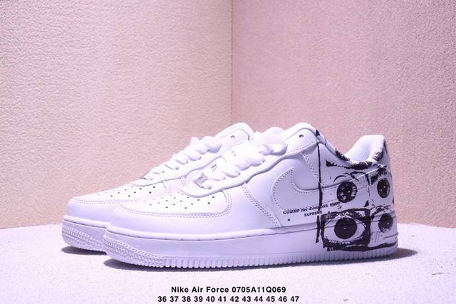 Nike 耐克 采用软质荔枝纹牛剖皮革鞋面材质耐克Nike Wmns Air Force 7 Low White Cherry Blosso Pink 空军一号经典低帮百搭休闲运动板鞋