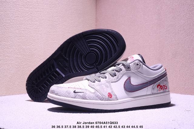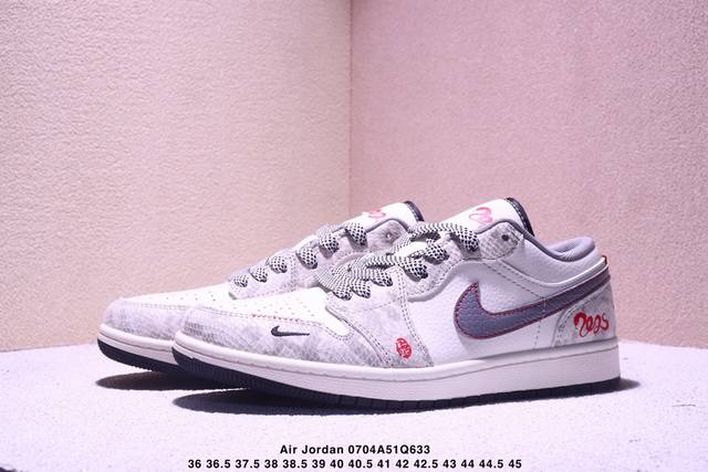 Nike Jordan Air Jordan 1“斯图西联名 灰黑红标双拼” 高端定制 低帮 复古 减震 防滑 耐磨 篮球鞋 定制鞋盒 大厂纯原品质出货 超高清洁度 皮料切割干净无任何毛边 细节完美