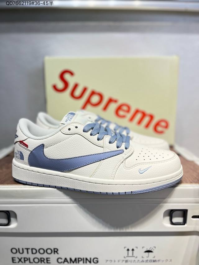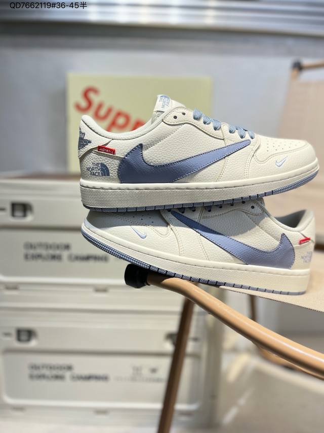 定制鞋盒 纯原大厂# 北面 X乔丹Air Jordan 1 Low Aj1低帮系列篮球鞋 官方同步配色 原装级产物 #拒绝公底 立体鞋型 细节完美 高清洁度Di