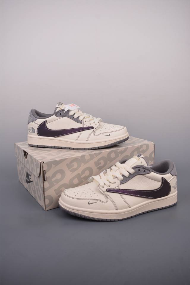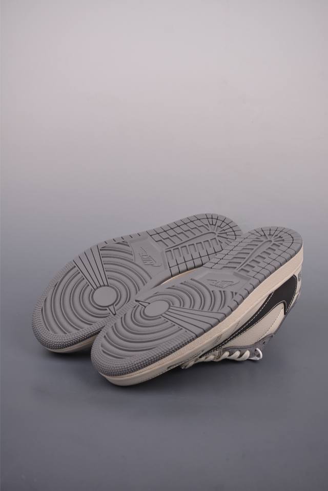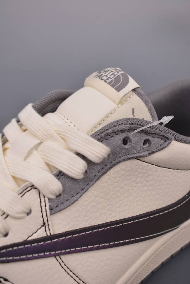 性价比原盒出货 全新的三方联名低帮倒钩鞋面延续了黑脚趾设计,整双鞋以全荔枝皮打造,腰身搭配白色「倒勾」,再点缀上Travis Scott 标志性的Logo,后跟处以藤原浩最拿手的蓝色为主色调,完善极具Fragment Design的白蓝黑设计风格,左右脚分别以Travis Scott鬼脸和乔丹飞翼加以修饰,彰显出三方联名的奢华格调。