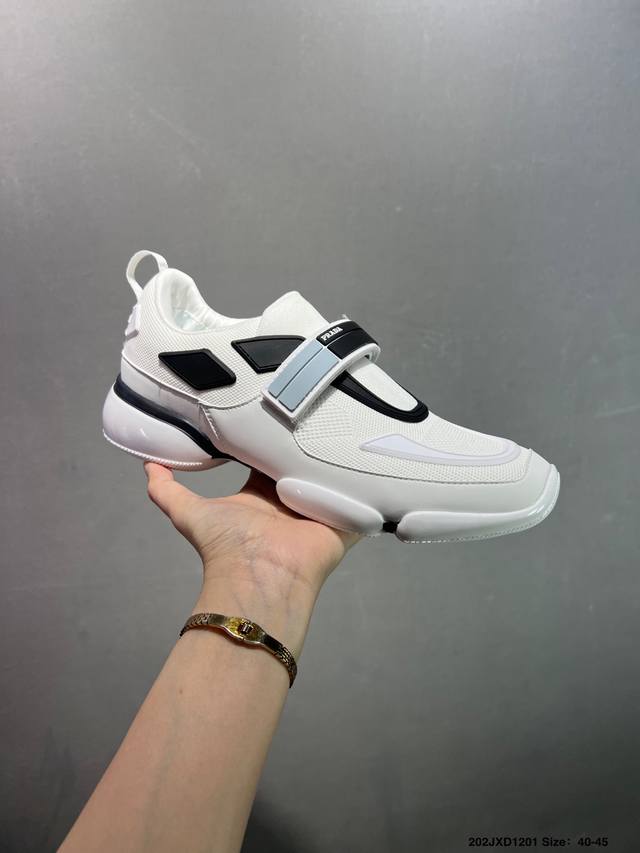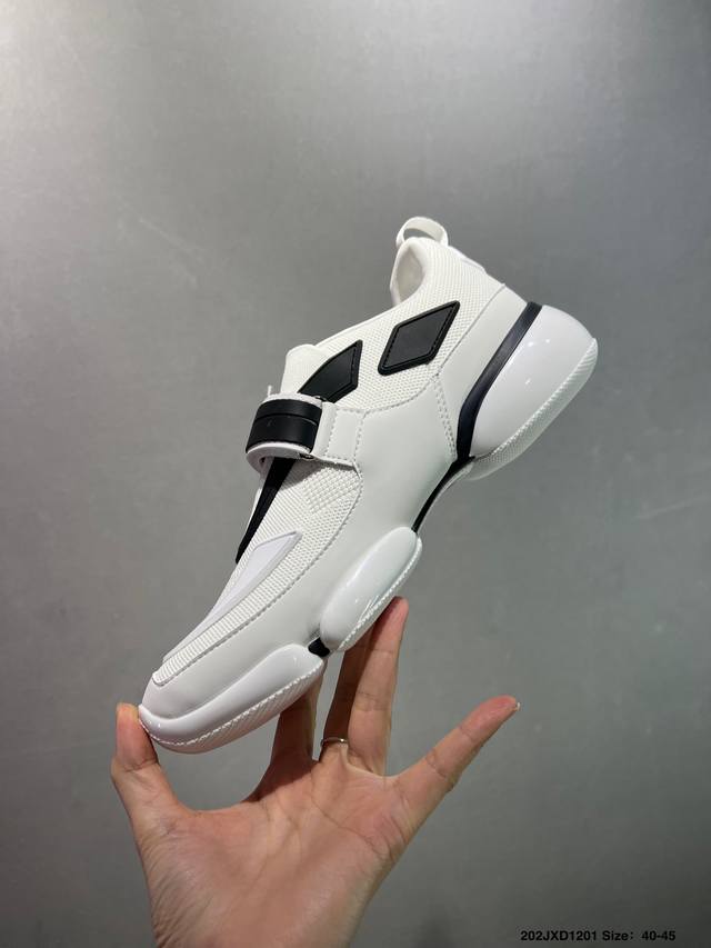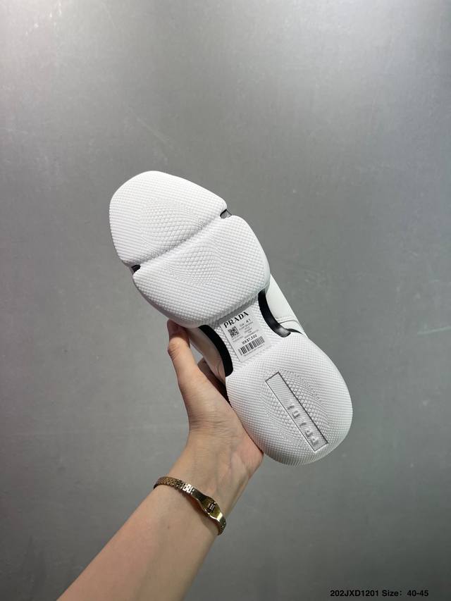 普拉达春夏系列 专柜新款厚底松糕运动鞋系列外形是廓形设计 轮廓类似麦昆 厚底 鞋头饱满 宽版设计 底子是软弹那种...