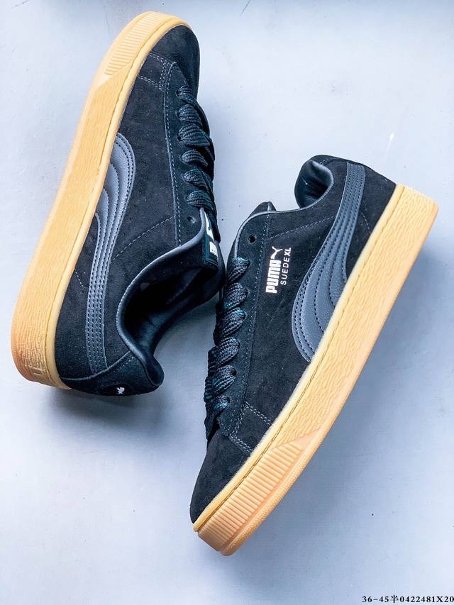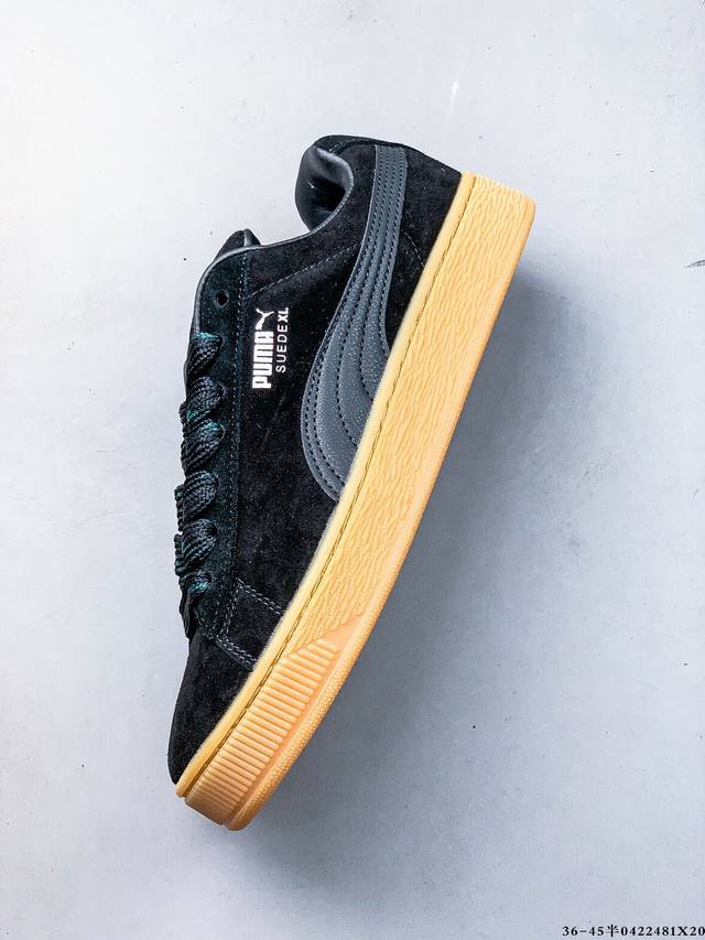 / 公司级!彪马puma Suede Xl 全新休闲板鞋!鞋身通体采用细腻的麂皮材质,厚实柔软,质感出众;鞋侧保留puma标志性跑道图案,侧面与后跟点缀金属色pum