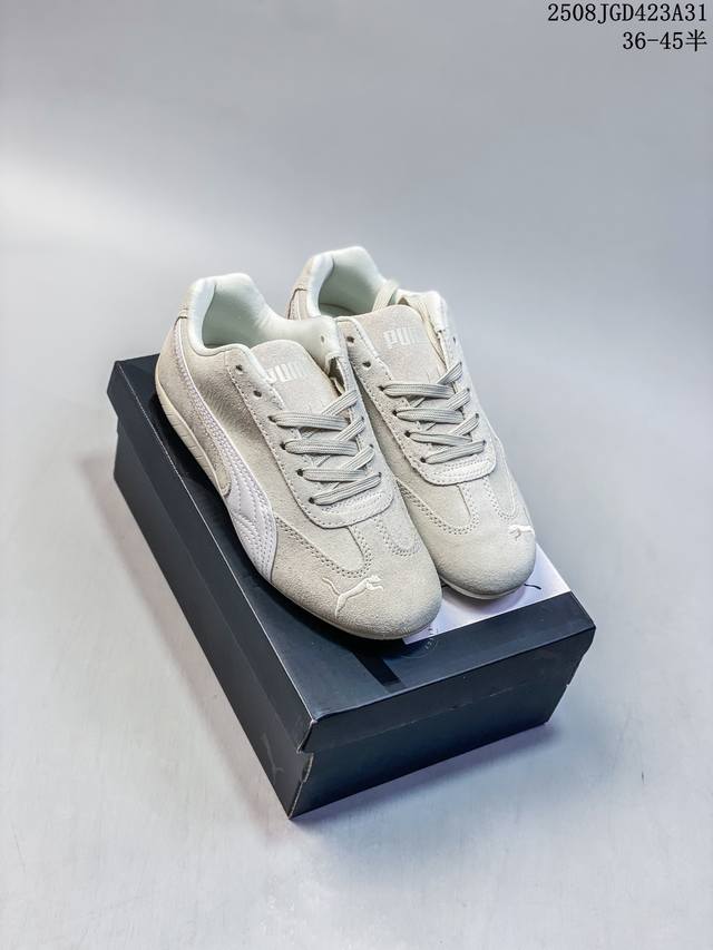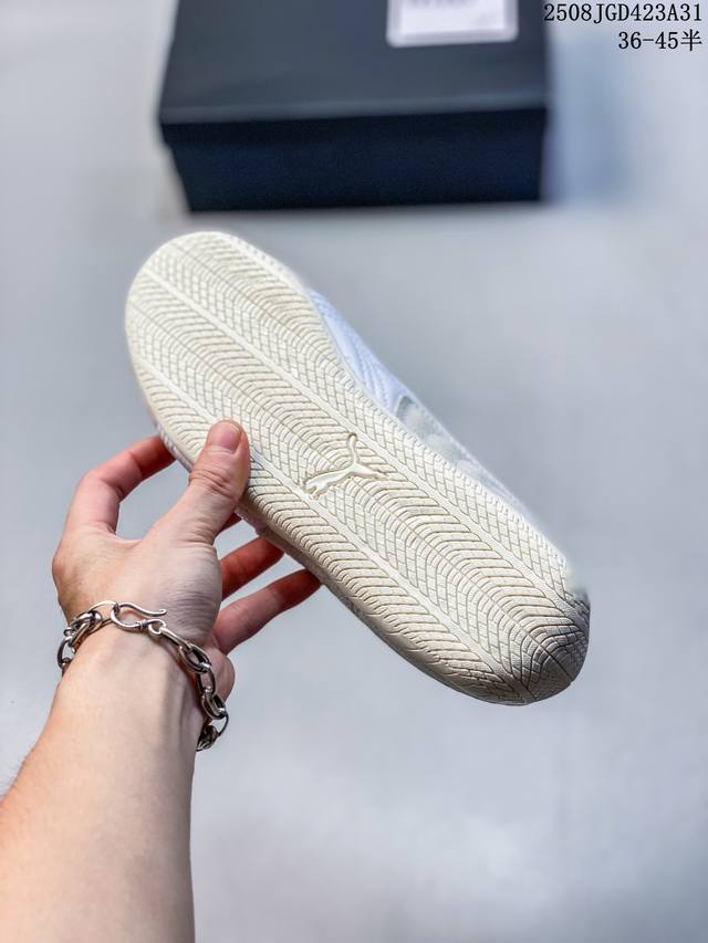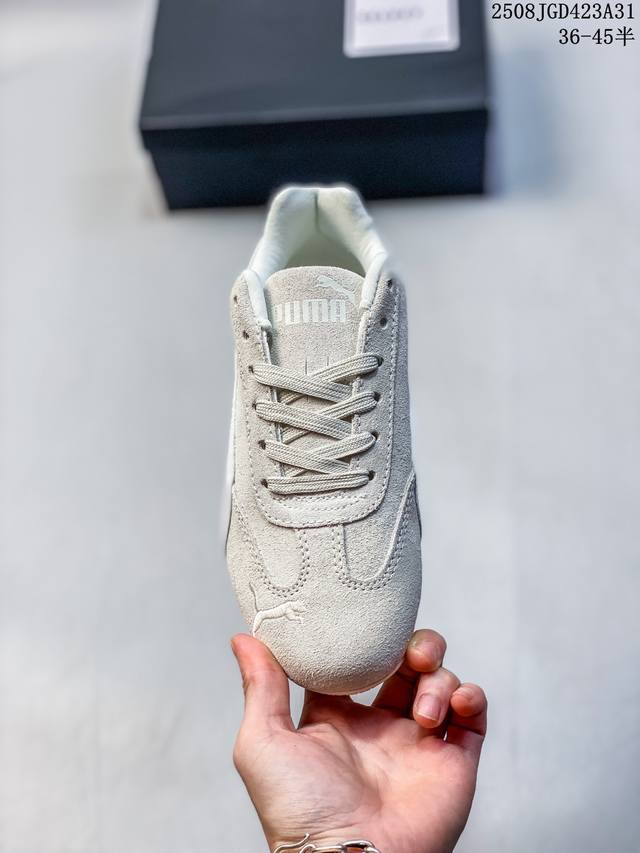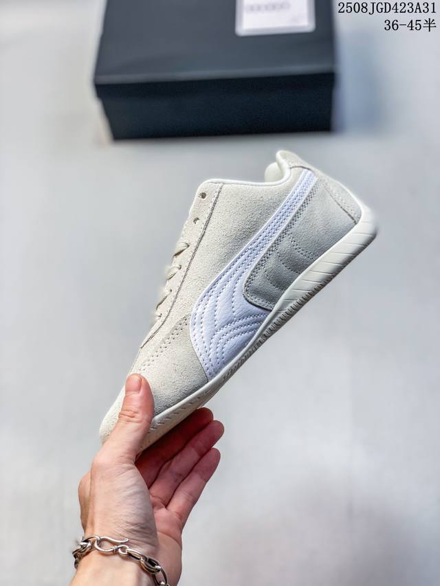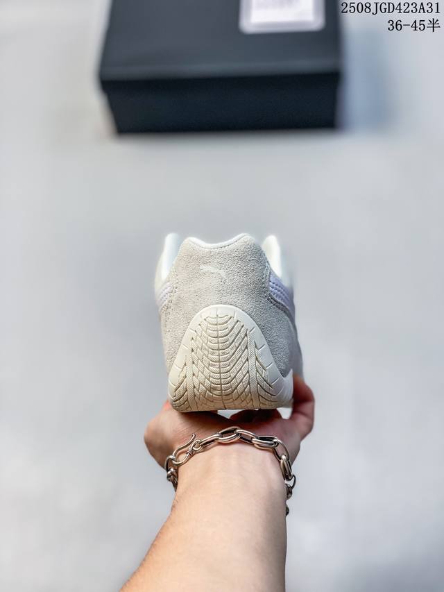 公司级 puma Speedca Og 彪马极速赛车系列低帮德训风拼接复古百搭休闲运动赛车鞋 鞋款从80、90年代赛车手所穿的防火赛车鞋为原型,鞋身线条模仿了赛车的流线廓形,体现了空气动力学原理的结构。简约流畅的外观,恰好又和贯穿其中的Formstrip Logo融合恰到好处,视觉上细节丰富且协调。本次Speedcat Og鞋款归来,最大看点自然式保留了窄版鞋型以及薄底构造。这两年各品牌鞋底越做越厚,Speedcat反其道而行之,上脚几乎无鞋底的效果带来耳目一新的视觉体验。鞋面依旧是以质感透气网面材质打造